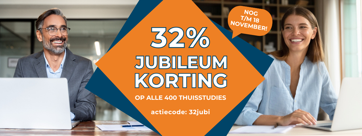 Sinds onze oprichter 45 jaar geleden zijn eerste stappen zette in het afstandsonderwijs, zijn we met de allerbeste thuisstudies uitgegroeid tot dé betrouwbare partner voor persoonlijke en professionele groei. Om dit bijzondere jubileum te vieren, geven we nú tijdelijk 32% jubileumkorting op al onze 400 thuisstudies! Lees verder